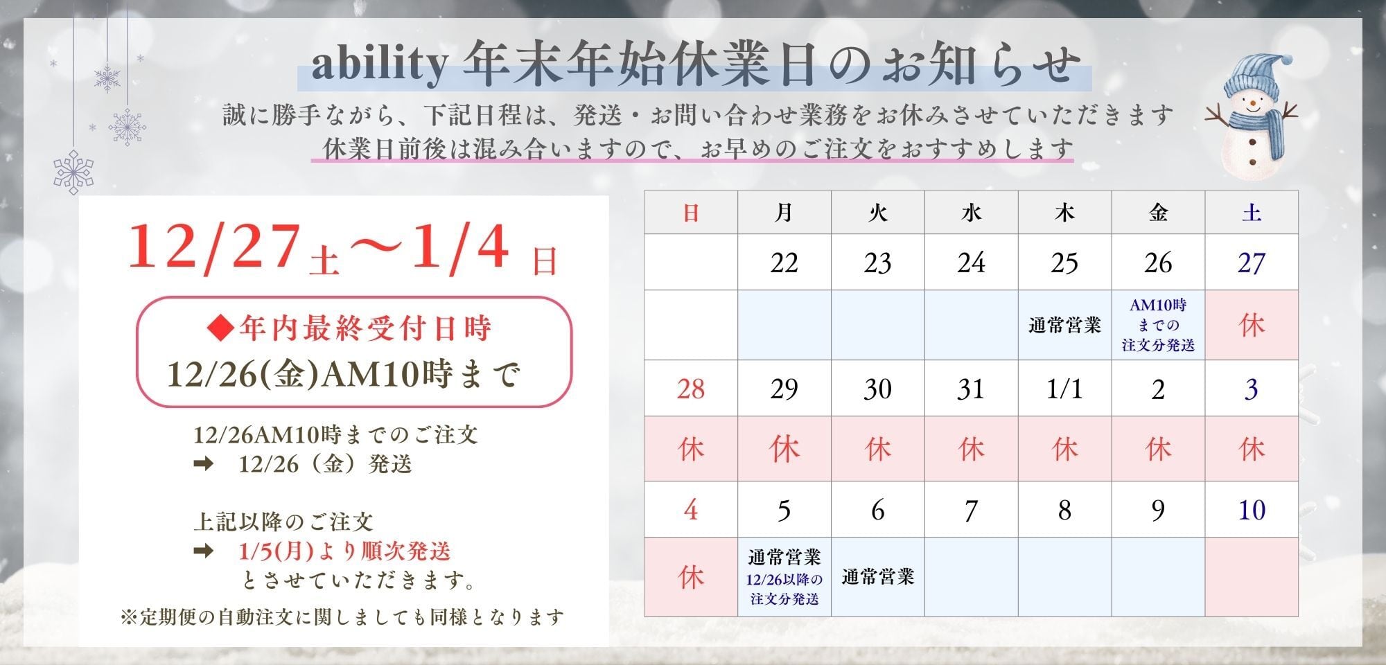 - 先着100セット!【ability★クリスマスコフレ 冬の徹底肌保湿!キャンペーン】開催中です✨