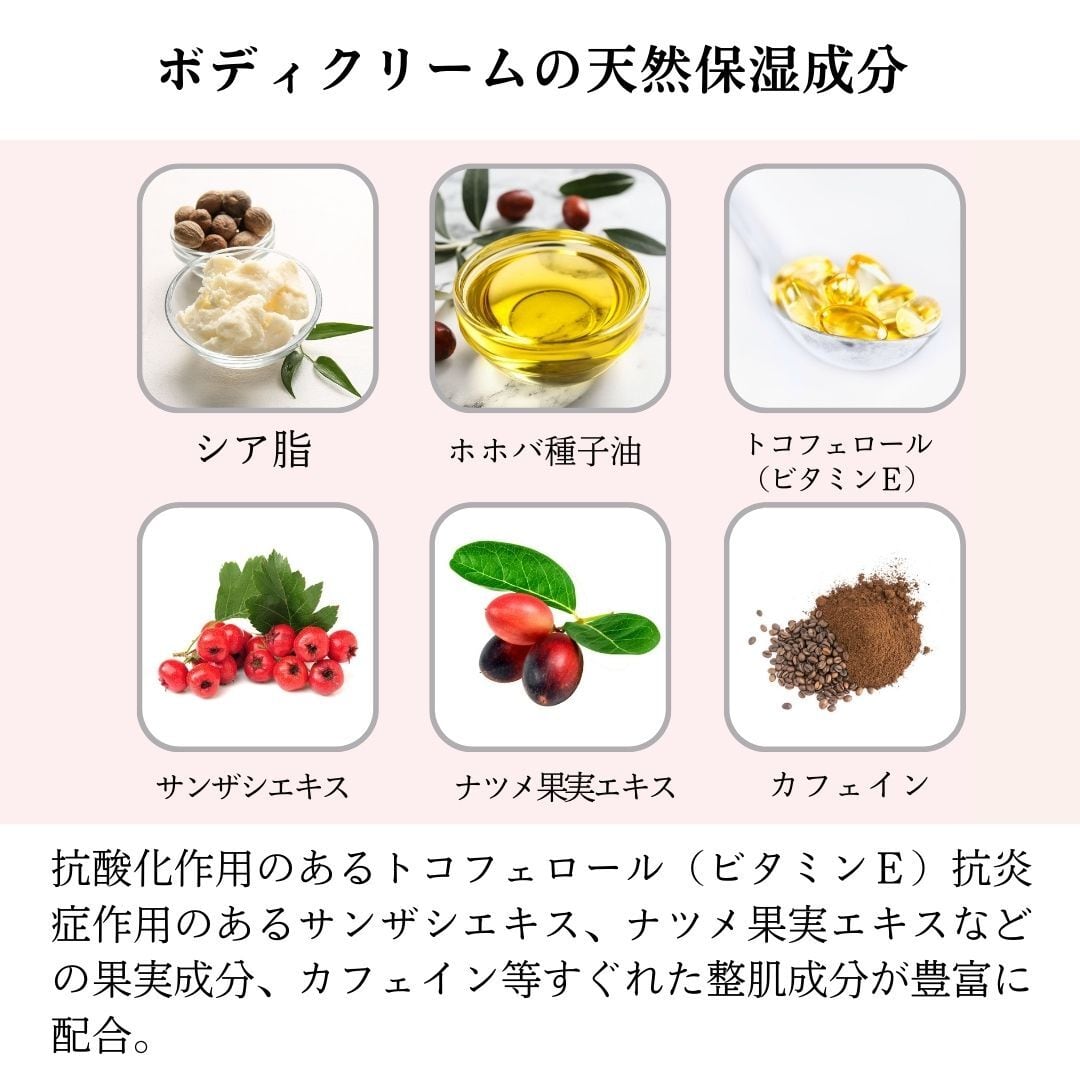 ●全成分:水、グリセリン、トリエチルヘキサノイン、ジメチコン、BG、シア脂、ホホバ種子油、ステアリン酸、スクワラン、水添ナタネ油アルコール、ステアリン酸グリセリル、ベヘニルアルコール、ステアリン酸グリセリル(SE)、アボカド油、オリーブ果実油、マカデミア種子油、ヒマシ油、カルボマー、ヒアルロン酸Na、グリチルリチン酸2K、サンザシエキス、ナツメ果実エキス、グレープフルーツ果実エキス、リンゴ果実エキス、オレンジ果汁、レモン果汁、ライム果汁、トコフェロール、クエン酸、水酸化K、カプリン酸グリセリル、 ラウリン酸ポリグリセリル-2、ラウリン酸ポリグリセリル-10、ヒドロキシエチルセルロース、ベントナイト、アルギン酸シロキサントリオール、カフェイン、乳酸、メチルパラベン、エチルパラベン